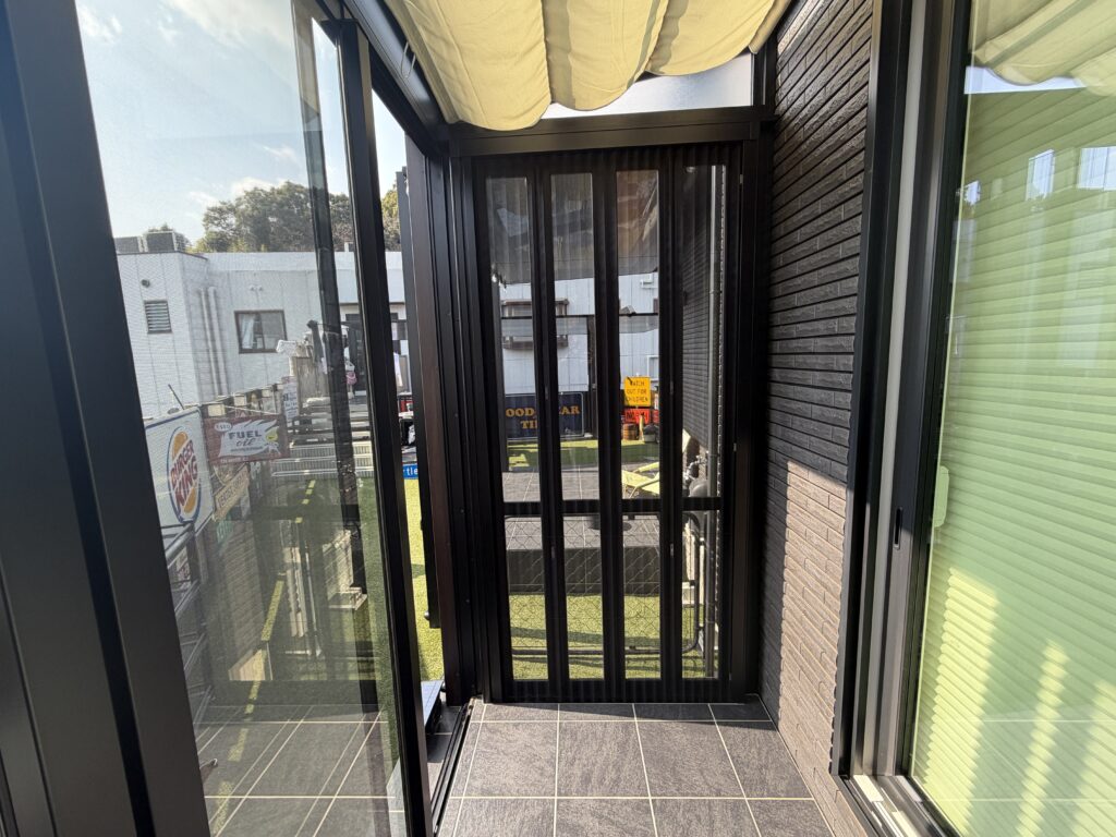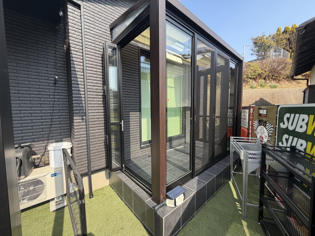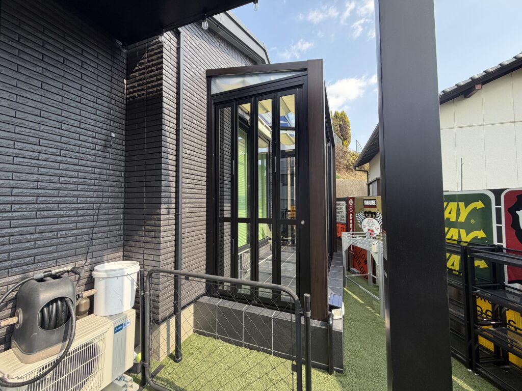正面は4枚引違いサッシ。側面扉は、折れ戸(通称ぱたぱた←うちだけかも笑)。